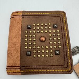 Justin RFID Western Bi-Fold Wallet Brown Studded Leather NWT
