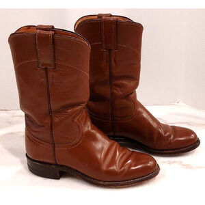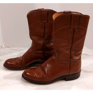 Justin Ropers Womens Sz 4.5 C Round Toe Brown Leather Western Cowboy Boots L3802