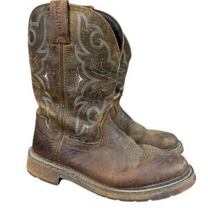 Justin Stampede WK4311 Armarillo Western Leather Brown Mid Calf Work Boots 8.5 D