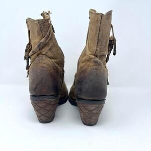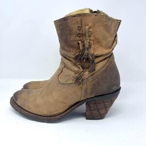 Justin Tan Rustico Side Zipper w/Tassles Block Heel Western Boots MSL101