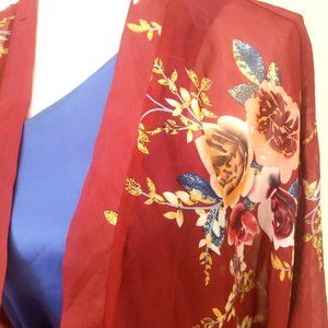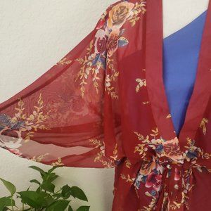 Justin & Taylor Sheer Coverup Ruana Series OSFM Burgundy Floral