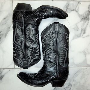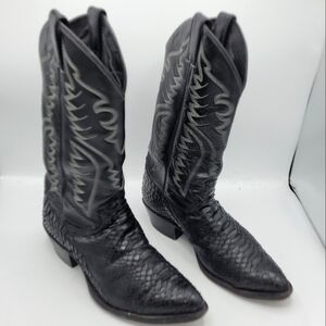 Justin Vintage Black Python Snakeskin Men's Cowboy Boots Handmade Size 8.5 D