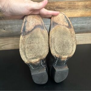 These men’s vintage Justin boots are a size 10.5 EE and are in fair preowned condition. There are multiple scratch marks noted on the side of the left boot, shown in pictures…cosmetic. Also, peeling of the trim at the top of both boots. Please see photos as they are part of the description and show the wear and condition of the boots. Questions? Leave a comment below!