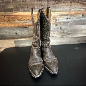 These men’s Justin western boots are a size 7.5 EE and are in good preowned condition. Please see photos as they are part of the description and show the wear and condition of the boots. Questions? Leave a comment.