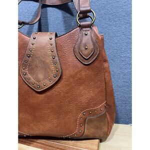 Justin Western Carry Handbag With Dual Zippered Pockets Magnet Closure Brown
