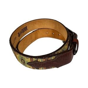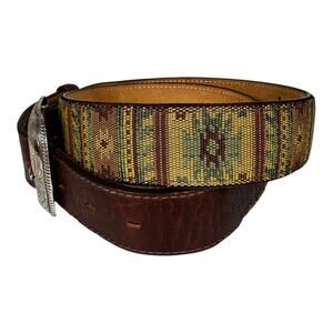 Justin Western Embroidered Tapestry Leather Belt 36 Made in USA Brown Woven