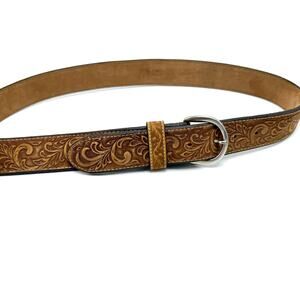 Justin Western Scroll Tooled Belt 36 Brown Top Grain Leather Cowboy Made in USA