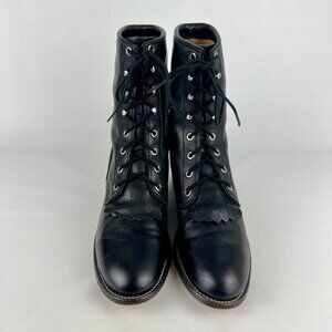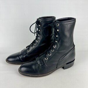 Justin Womens Black Leather Lacer Roper Boots Lace Up Kiltie L620 size 8.5B