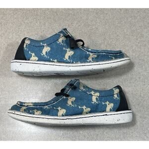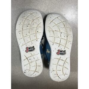 Justin Women’s Hazer Size 6.5 M Turquoise & Bronc Round Leather & Fabric Slip-On