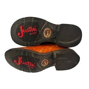 Justin Women’s Ostrich Print Western Cowboy Boots - Red/Cognac (Size 7B)