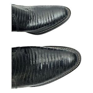 Western Cowboy Boots – Size 7 B – Black Leather with Lizard Skin – Made in USA