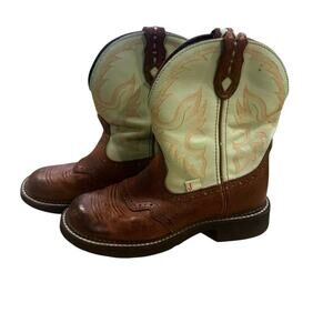 Justin Women’s Western Cowboy Boots Brown & Green Leather Size 7B Style L9904