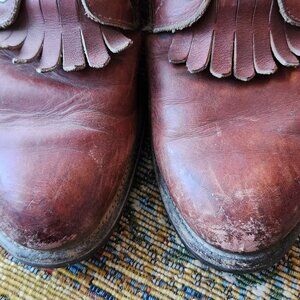 Worn toes and visible wear on exterior of leather upper. Women's size 9.5 wide width.