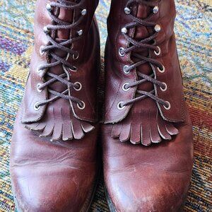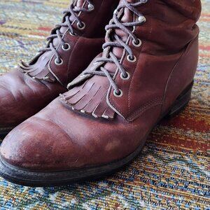 Justin Women's Western Keltie Brown Leather Lace Up Ankle Boots Round Toe 8D/9.5