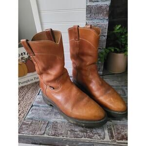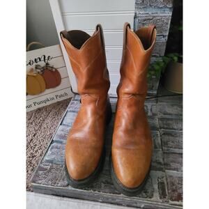 Justin Work Boots Men’s 10EE Wide Tan Leather Pull-On USA Made Durable Sole