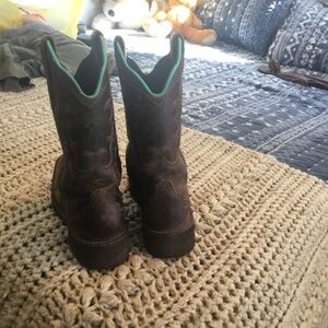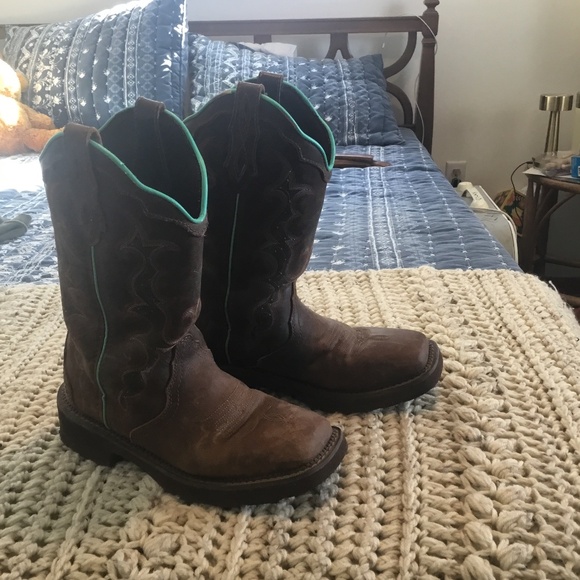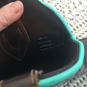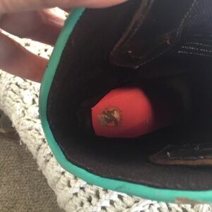 Excellent preowned condition. Original square toe. Innersoles comfortable and like new. Broken in cool. Lots of life left. Green piping trim.