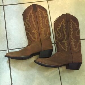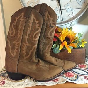 Stylish Justin women's westerner cowboy boot features a pointed toe with a traditional western heel.
