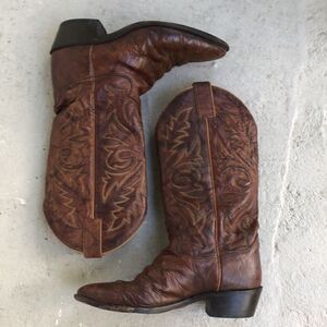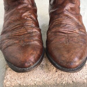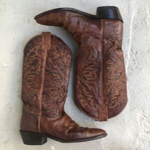 Vintage Justin, cowboy boots. Check out the pictures. Not New# not perfect but still really good. The right route has a scarf that I show him pictures and gum on the Sole! I tried taking it off, but I’m not that patient🙃 Real height is 1.5 shaft height through the middle is 13 width is almost 7