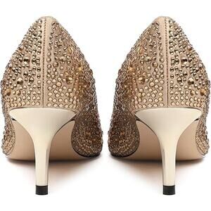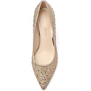 Justvindo Womens Size 8.5 Gold Satin Rhinestone 2.5" Heel Closed Point Toe Shoes