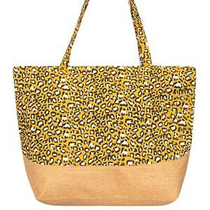 Leopard Print Jute Tote Bag - Mustard Yellow π π