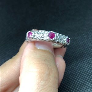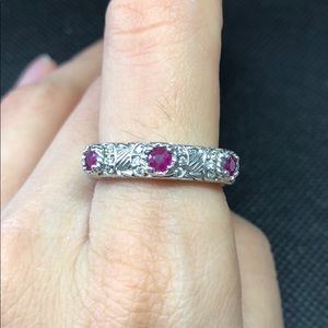 Judith Ripka Sterling silver pink ruby and diamonique band ring in very good condition