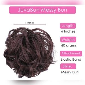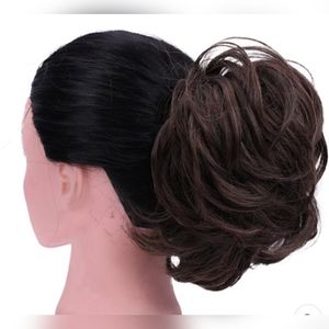 Side bun, high bun, or half bun. Enjoy a variety of different hairstyles with the messy bun. Super versatile for work or casual styles. New in bag, never worn. The color is dark brown.