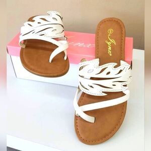 Cute little sandal with toe loop. Padded footbed and nice design goes over the top of your foot.