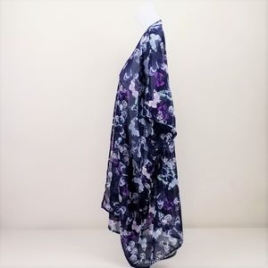 K Accessories Kimono Top Purple Green Butterfly Print Womens One Size Fits Most