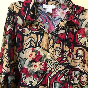 K Arnold Vintage Button-down Floral 100% Silk Shirt L
