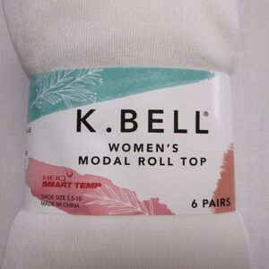 K BELL Womens Modal Roll Top Socks 6 pairs Solid Colors White Blue Pink Grey NWT