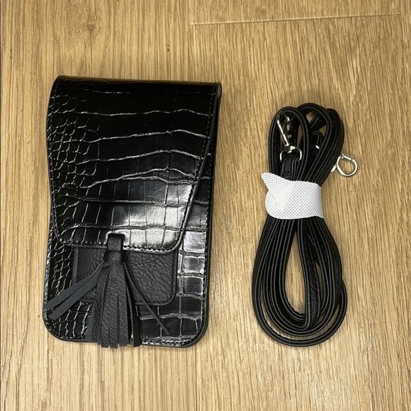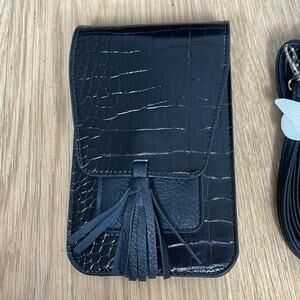 K. CARROLL Black Croc Embossed Small Foldover Crossbody Bag. Stylish black crossbody bag with croc embossing. Includes a matching strap. Perfect for any occasion. NWOT.