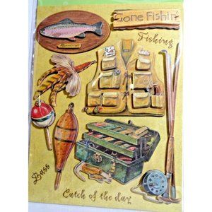 K & Company Gone Fishing 3-D Fly Fishing Scrapbook Stickers - 8-Piece - Gone Fishin'