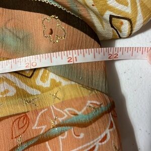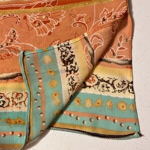 K & Company lapel front stripe duster in pinks, aqua, gold. Size large, petit (although measures long). Deep side slits. Perfect over a shell for dressy look. New without tag.