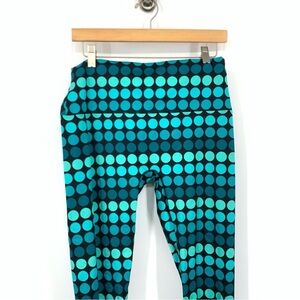 K DEER Women Size 2XL Leggings Capri Cropped Blue Black Polka Dot Printed Pants