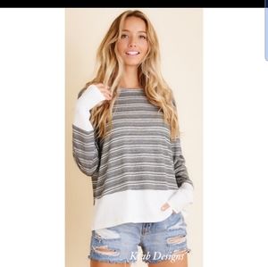 Casual Black and White Strip Top With Contrast. Such a cute top! Looks GREAT with jeans!
