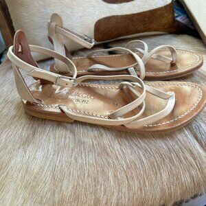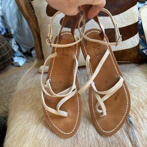 K Jacques St Tropez Greece cream all leather strappy sandals 7