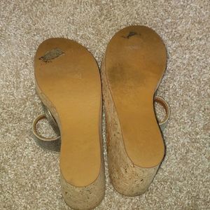 Beautiful K Jacques St Tropez Cork Wedge sandals, size 37. lightly used and in very good condition. heel is 4". metallic bronze colored straps with light cork heels.