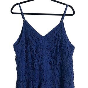 K. Jordan 1X Navy Lace Dress Lined Spaghetti Straps Wedding Guest Cocktail