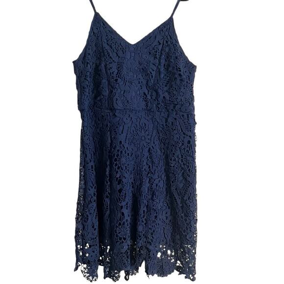 K. Jordan 1X Navy Lace Dress Lined Spaghetti Straps Wedding Guest Cocktail