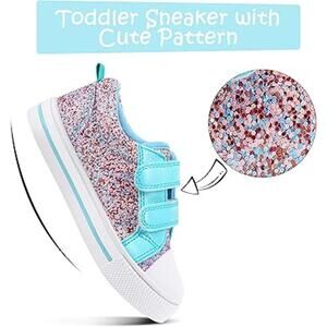 K KomForme Little Girls Size 12 Blue Pink Glitter Hook Loop Strap Sneaker Shoes