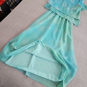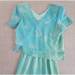 K Petite Floral Dress Women's 6P Spring/Summer Seafoam Green Layered Lined EUC