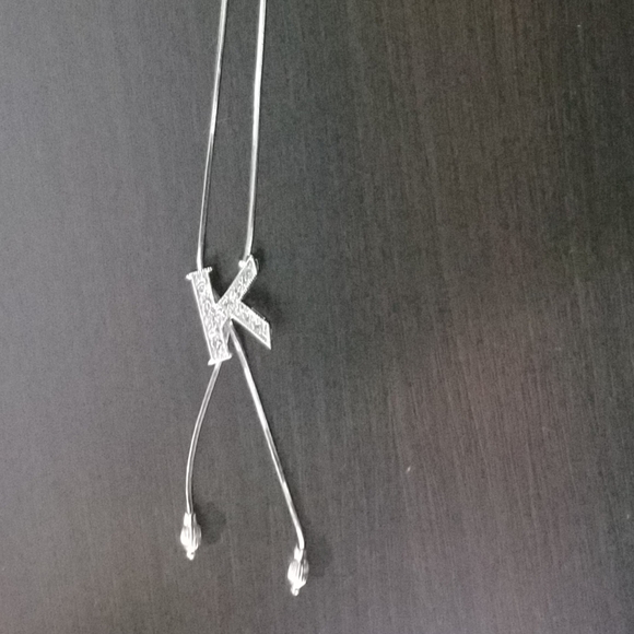 This sliver slide necklace with the letter "K" with Rinestones measures 10.5" NWT original price was cut off as it was a gift.