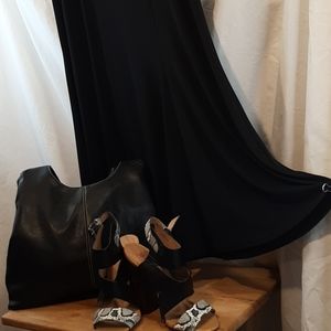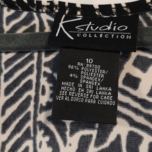 K STUDIO COLLECTION Black and beige and little afro eclectic 3/4 length A line dress. This would make a great vacation travel dress will not wrinkle can be dressed up or down rolls nicely in your suitcase. You are ready for that cruise... Anchors Away. Pair with this great pair of snakeskin inspired sandals and a great satchel bag bundle and save 20%
