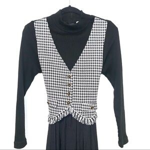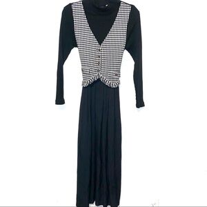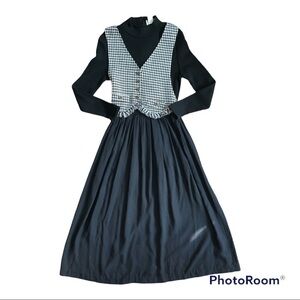 K STUDIO VINTAGE HOUNDSTOOTH midi DRESS gothcore witchy whimsygoth cottagecore