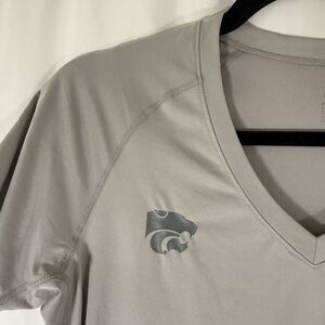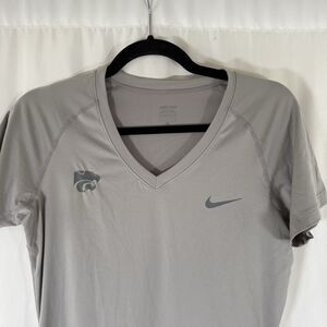 K State Wildcats Nike Pro Shirt Women's Large Solid Grey Short Sleeve Vneck
