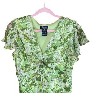 K Studio Green Floral Twist Waist Midi Dress Flutter Sleeve Size 14 Y2K fairy
