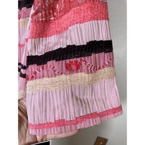 K Studio Textured Jacket 14 Pink Striped Floral Embroidery Resort Classic Preppy