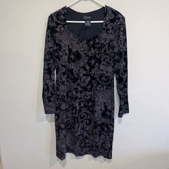 K Studio Women’s Long Sleeve Shimmer Dress Size 12 Black Floral
