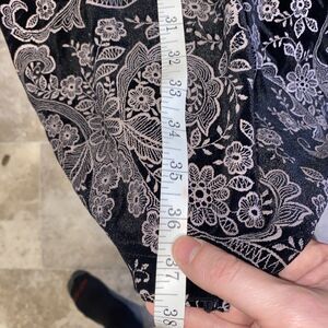 The K Studio Womens Long Sleeve Shimmer Dress in size 12 features a beautiful black floral pattern, perfect for adding a touch of elegance to your wardrobe. Made from a luxurious polyester blend, this midi-length A-Line dress boasts a round neckline and long sleeves, ideal for any formal occasion. Crafted in Sri Lanka, this dress exudes a feminine and sophisticated style, making it a versatile and timeless piece for any woman's closet.