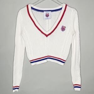 K Swiss x Forever 21 S Collaboration Cable Knit Tennis V Neck Sweater 90s